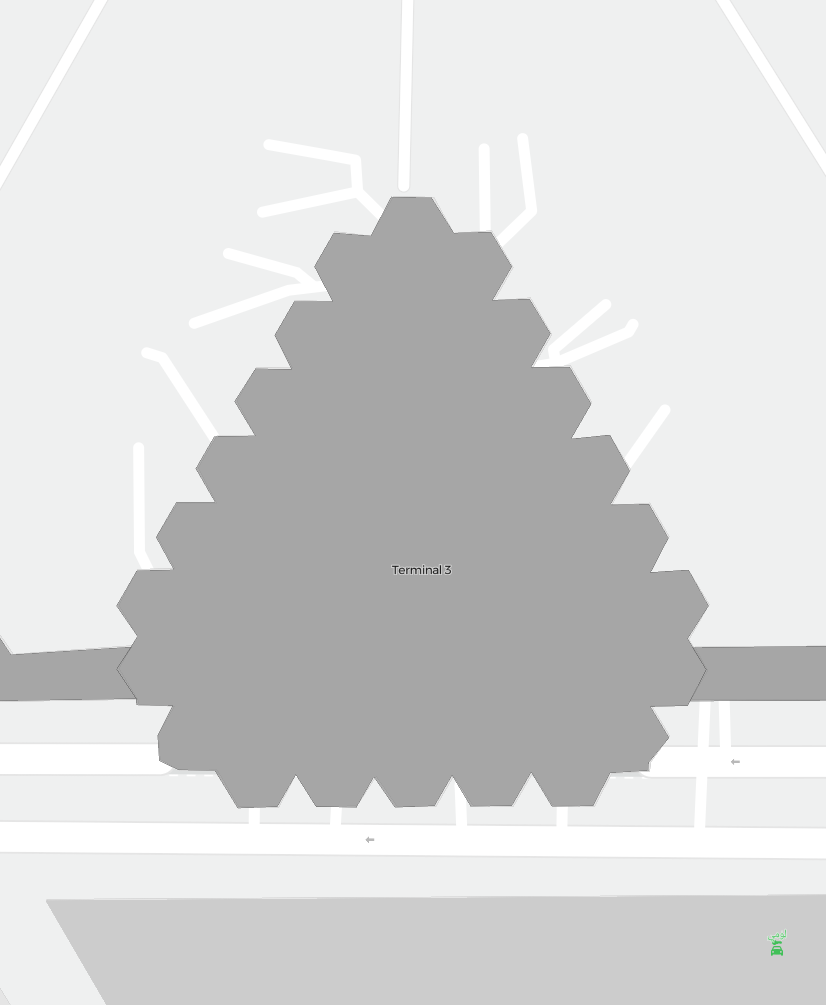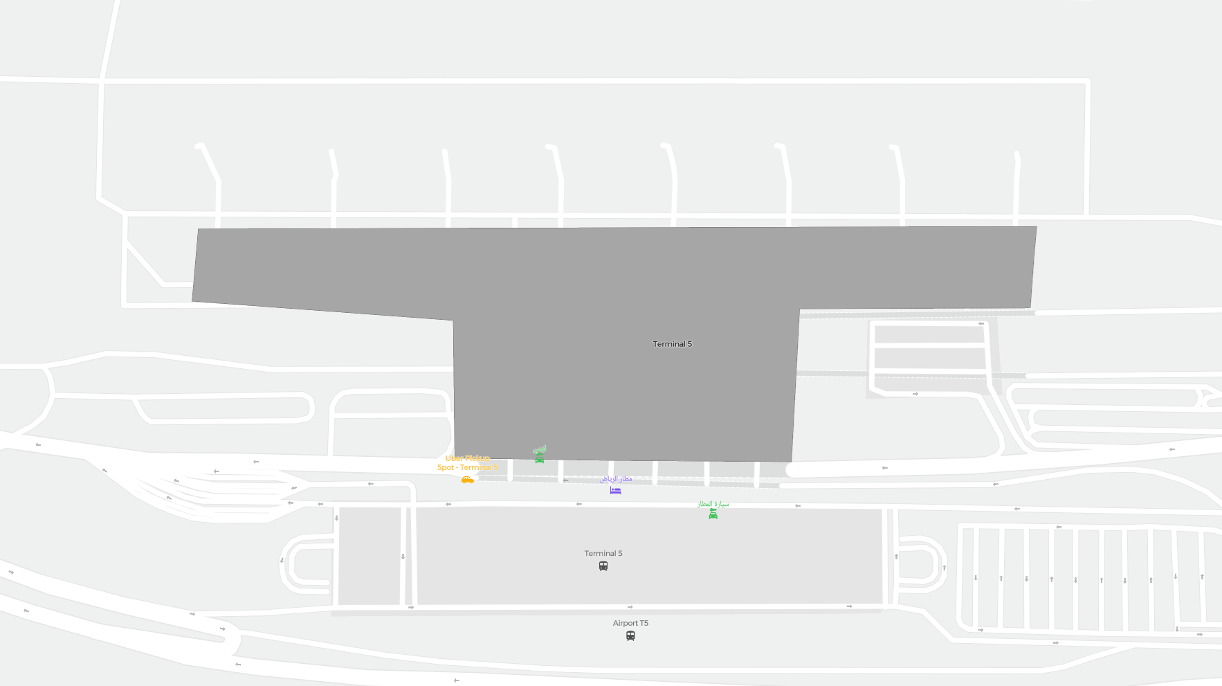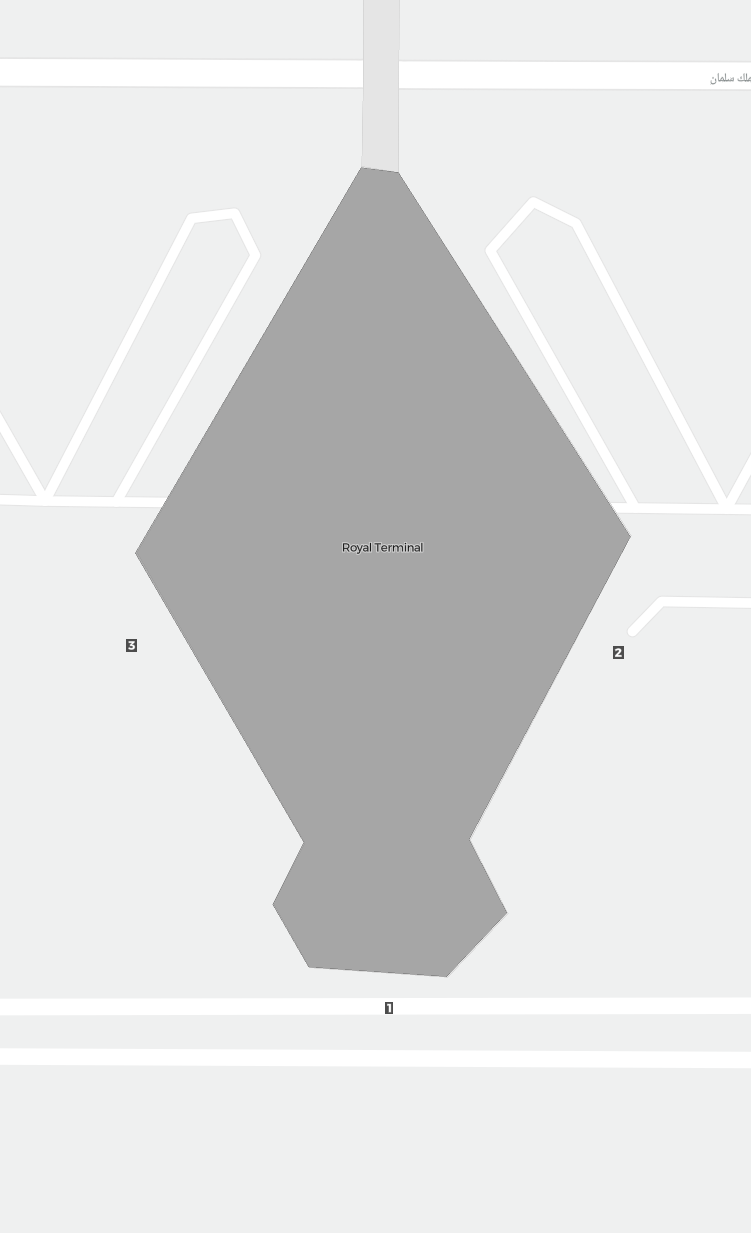 Dit is een inzoombare kaart van Riyad (RUH). De kaart geeft je een overzicht van het buitenterrein met terminals, parkeerplaatsen, en op sommige luchthavens ook details over gates, autoverhuur en andere voorzieningen bij inzoomen.