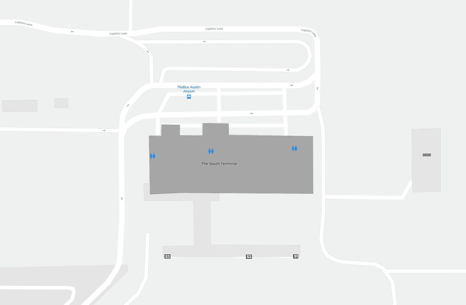 Dit is een inzoombare kaart van Austin (AUS). De kaart geeft je een overzicht van het buitenterrein met terminals, parkeerplaatsen, en op sommige luchthavens ook details over gates, autoverhuur en andere voorzieningen bij inzoomen.
