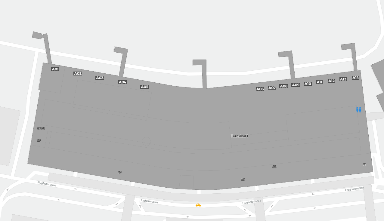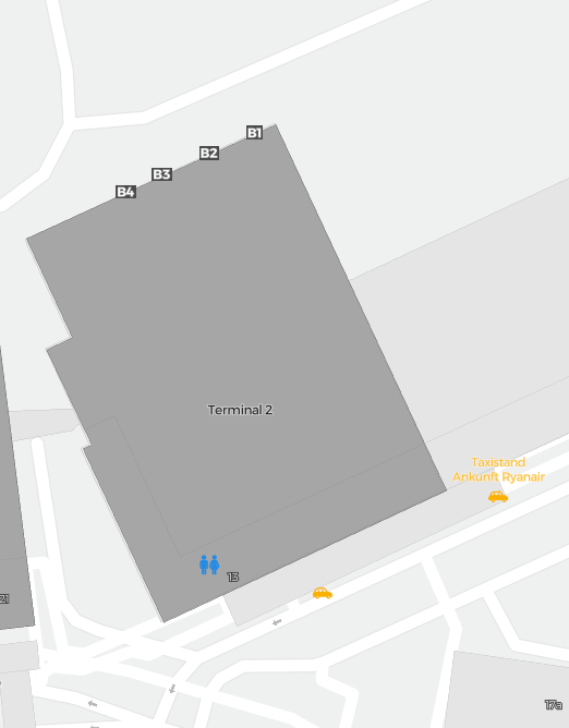 Dit is een inzoombare kaart van Bremen (BRE). De kaart geeft je een overzicht van het buitenterrein met terminals, parkeerplaatsen, en op sommige luchthavens ook details over gates, autoverhuur en andere voorzieningen bij inzoomen.