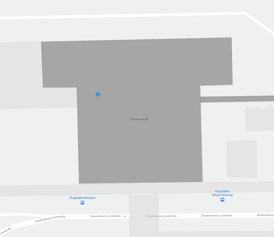 Dit is een inzoombare kaart van Erfurt (ERF). De kaart geeft je een overzicht van het buitenterrein met terminals, parkeerplaatsen, en op sommige luchthavens ook details over gates, autoverhuur en andere voorzieningen bij inzoomen.