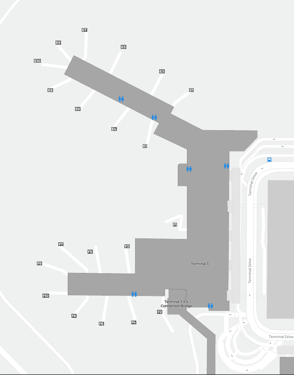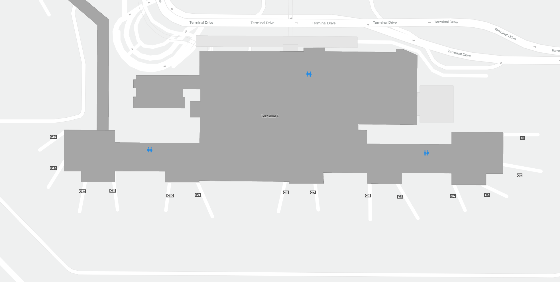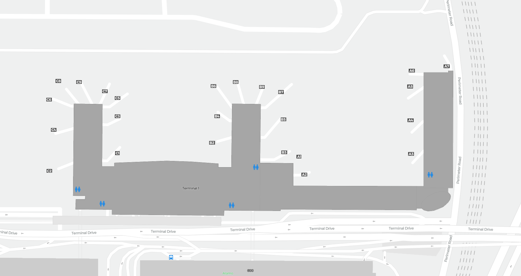 Dit is een inzoombare kaart van Fort Lauderdale (FLL). De kaart geeft je een overzicht van het buitenterrein met terminals, parkeerplaatsen, en op sommige luchthavens ook details over gates, autoverhuur en andere voorzieningen bij inzoomen.