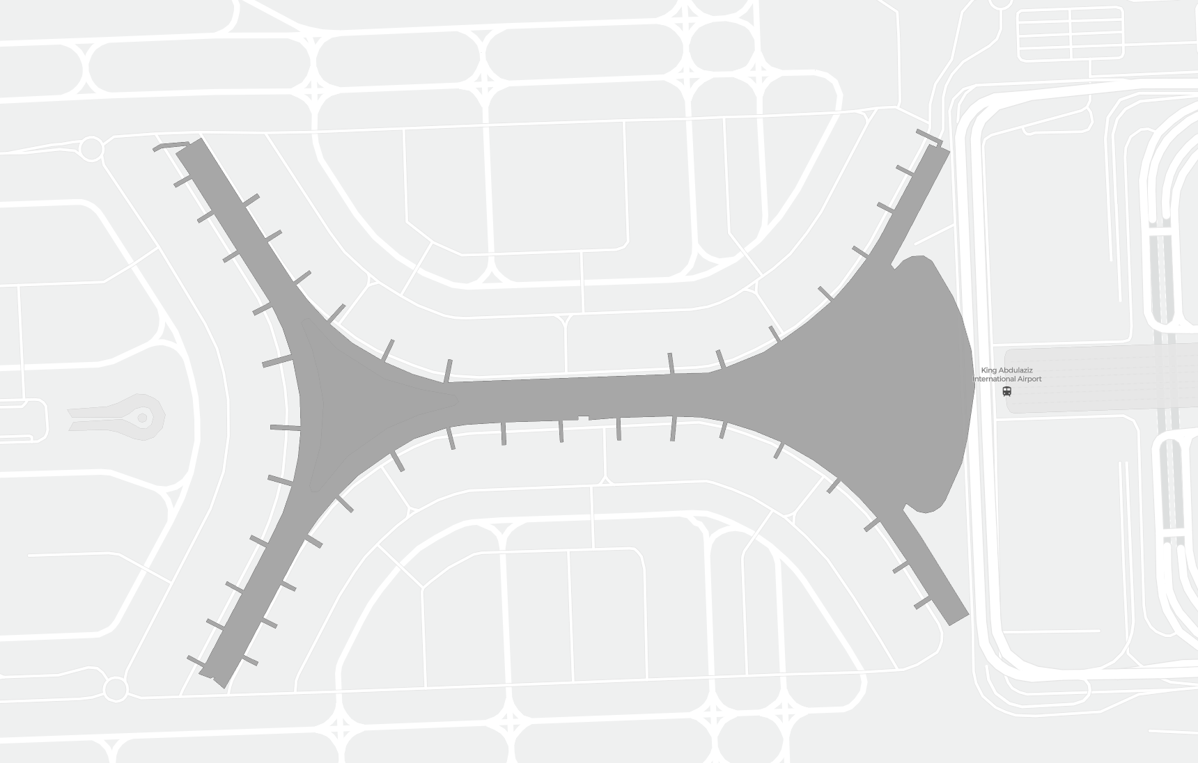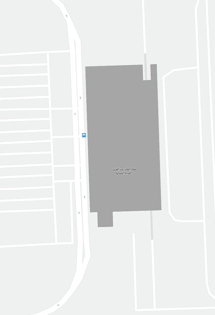 Dit is een inzoombare kaart van Djedda (JED). De kaart geeft je een overzicht van het buitenterrein met terminals, parkeerplaatsen, en op sommige luchthavens ook details over gates, autoverhuur en andere voorzieningen bij inzoomen.