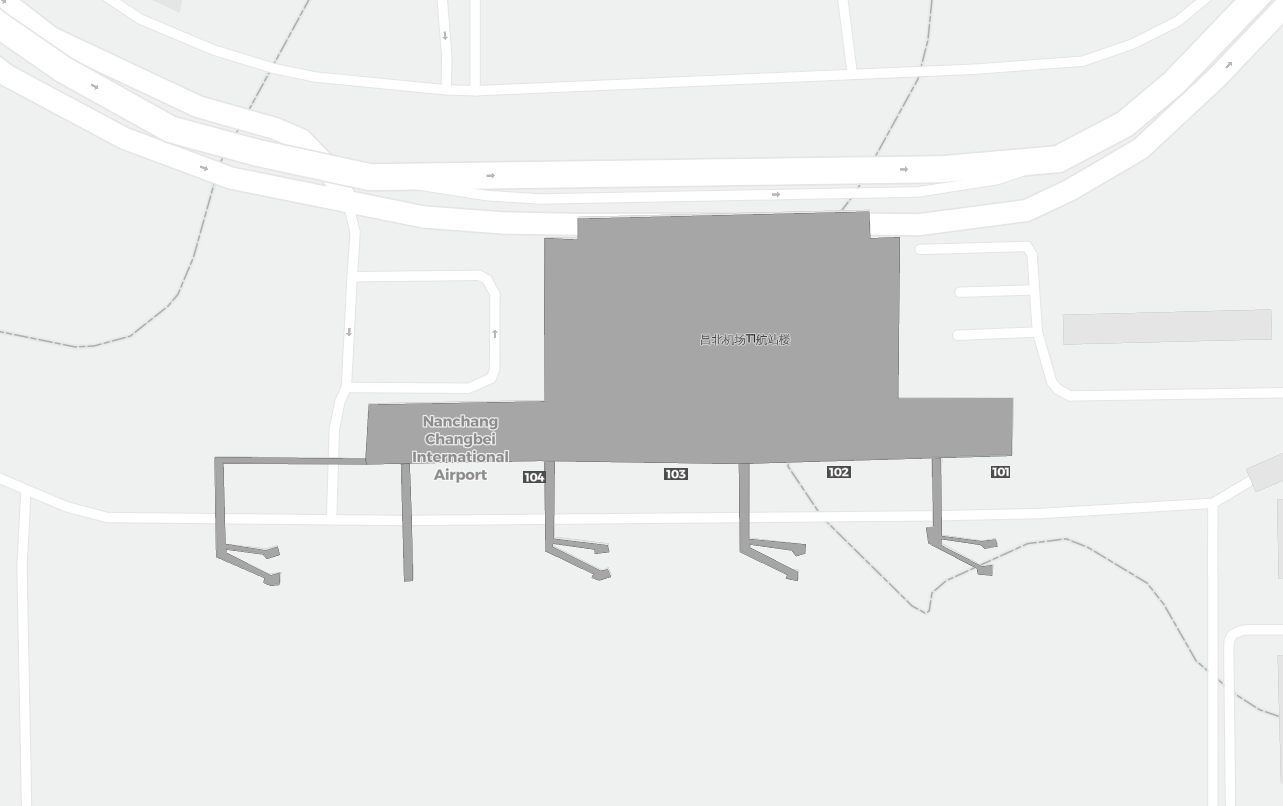Dit is een inzoombare kaart van Nanchang (KHN). De kaart geeft je een overzicht van het buitenterrein met terminals, parkeerplaatsen, en op sommige luchthavens ook details over gates, autoverhuur en andere voorzieningen bij inzoomen.