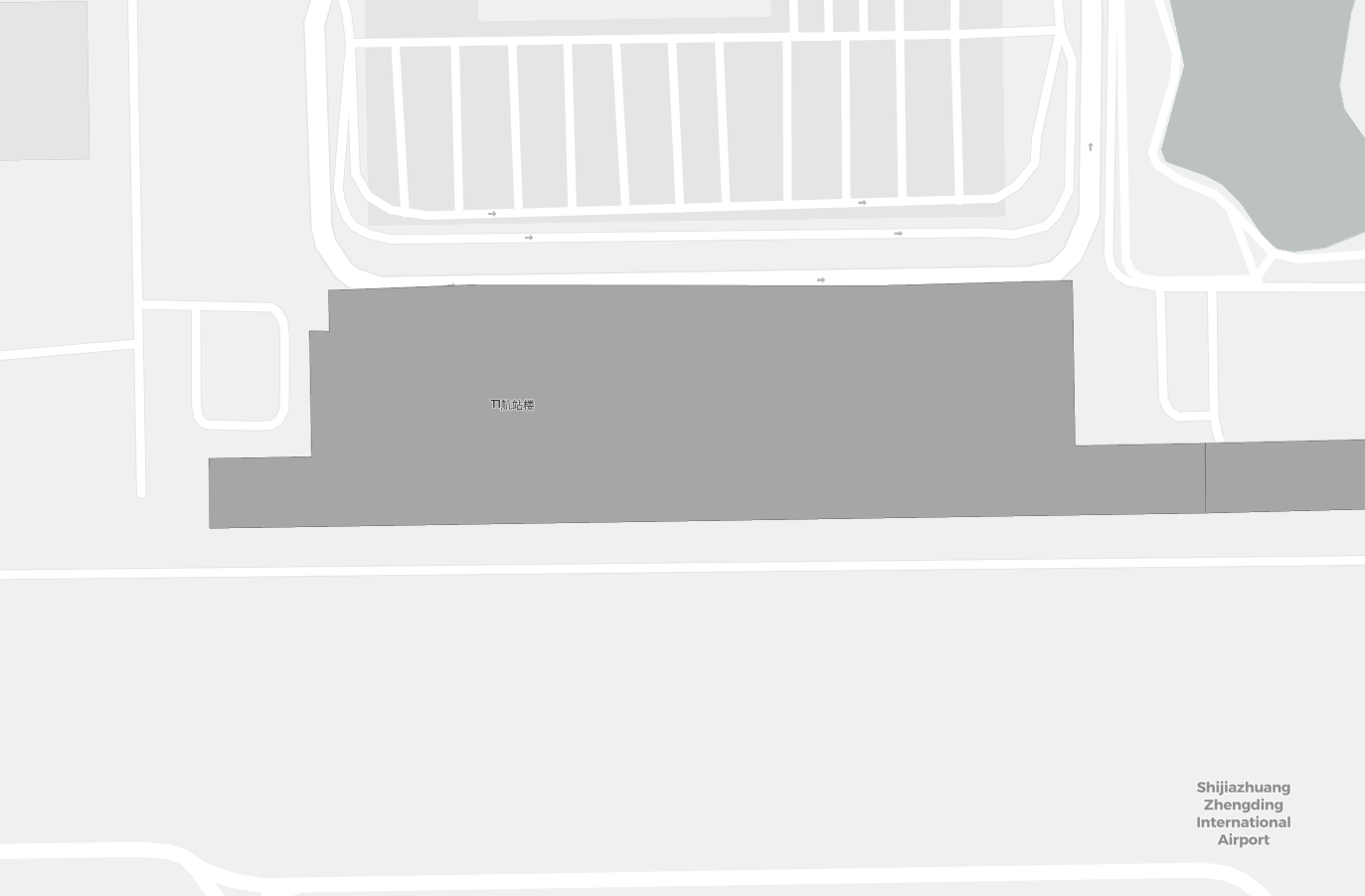Dit is een inzoombare kaart van Shijiazhuang (SJW). De kaart geeft je een overzicht van het buitenterrein met terminals, parkeerplaatsen, en op sommige luchthavens ook details over gates, autoverhuur en andere voorzieningen bij inzoomen.